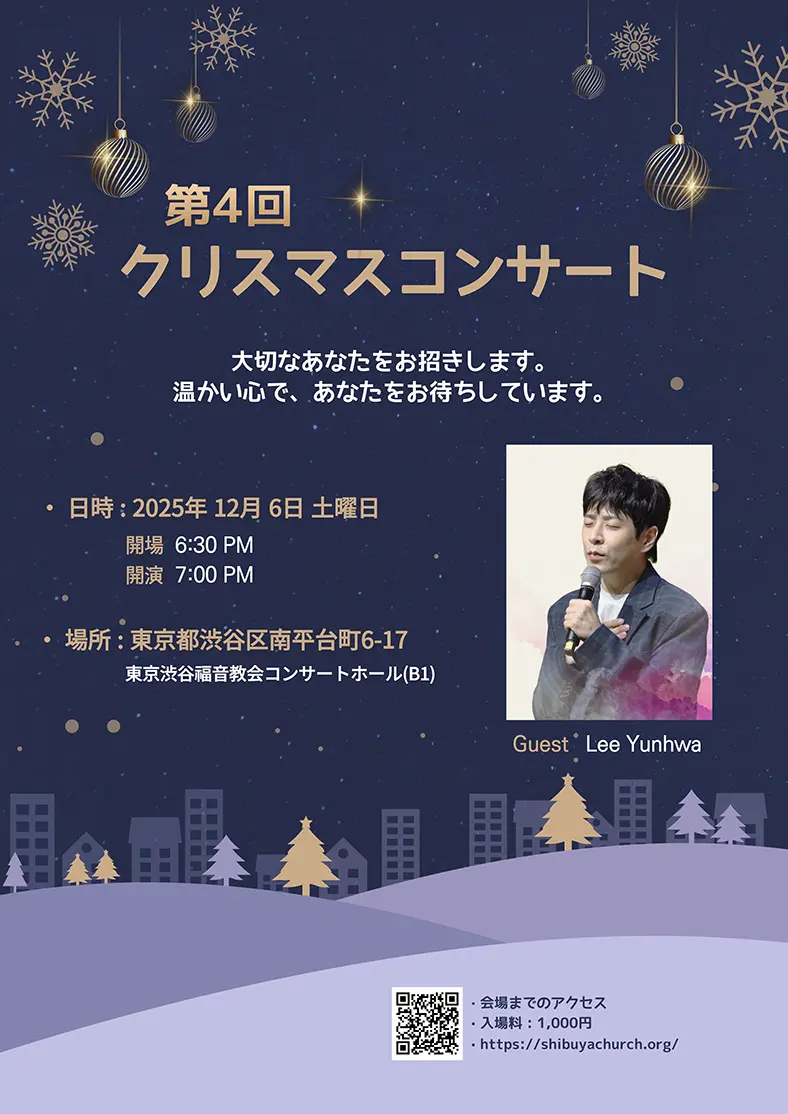 | 2025-11-10東京渋谷福音教会 第4回 クリスマスコンサート・2025年12月6日(土)開演 1... |