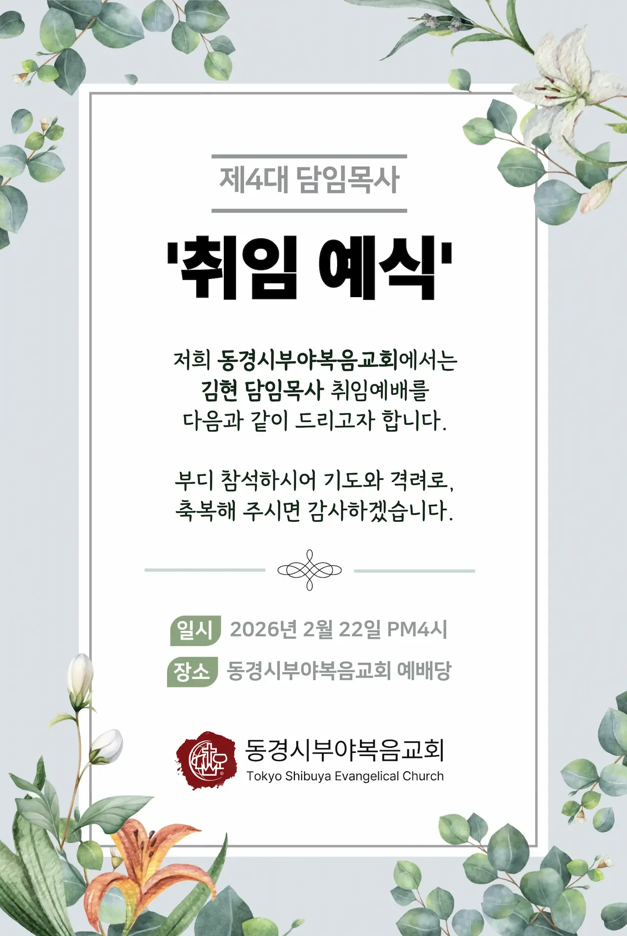 2026-02-22(日) - 1/2部 主日合同礼拝(日本語・韓国語)1:00PM
